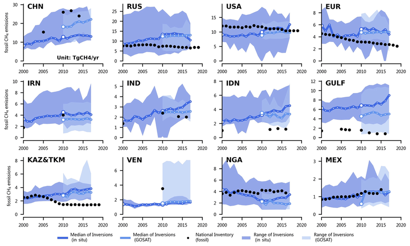 Methane emissions were found to be higher using the inversion method compared to most national reports. In particular, emissions from oil and gas extracting states in Central Asia and the Gulf were several times higher than officially reported.