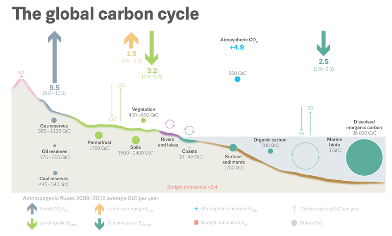 Figure 1: Perturbation of the global carbon cycle caused by anthropogenic activities, averaged globally for the decade 2009–2018 (GC/yr) (Friedlingstein et al., 2019, ESSD)