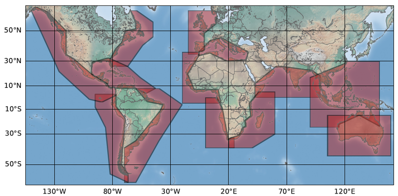 Reprocessed altimeter 10-day Sea Level Anomalies have been computed in all the coastal regions illustrated below.