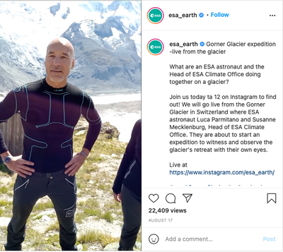 Meet and listen to Luca and Susanne describe the expedition aims and role of satellite monitoring in understanding how they are changing via ESA's Earth from Space Instagram account.