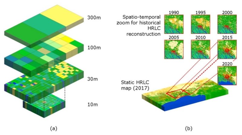- HRLC30: High Resolution Land Cover Maps at 30m spatial resolution for years 1990, 1995, 2000, 2005, 2010, 2015, 2019 (regional spatial extent, also referred to as historical maps),