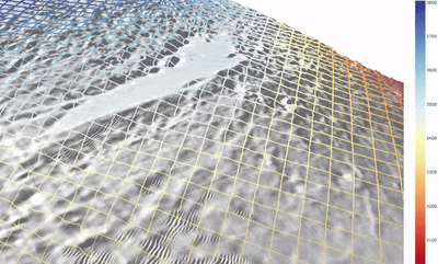 The retrieval of the grounding line position is based on the influence of the ocean tides on the floating ice which rests in hydrostatic equilibrium. Due to the fact that this tidal rise is absent on the grounded part of the glacier, a vertical deformation appears in the transition area.