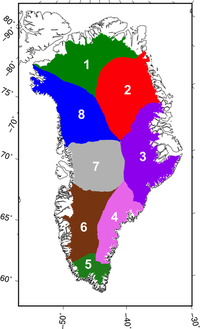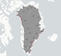 The drainage basins used are an aggregation of those described by Zwally et al. (2012). The figure below shows the outline of the basins. They are also employed for the GMB RR exercise.