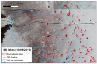 - Supraglacial Lakes (SGL) applying machine learning on optical (Sentinel-2) and lake bathymetry data (derived from laser altimetry data from IceSat-2) over two catchment areas in North-East Greenland (79 and Zacharia).