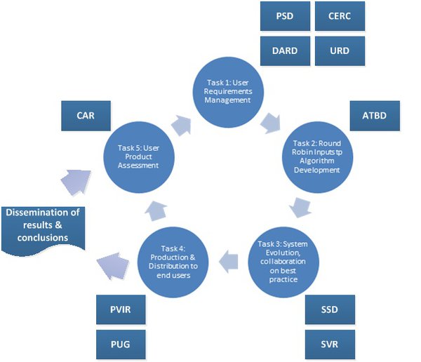The evolution of the ECV datasets, as envisaged initially in Phase 1, was linear, going from user consultation, algorithm selection, and prototype development to product generation and validation, after which it was considered that the system and products would be ready for being made operational. However, for Phase 2, a cyclic approach has been adopted, which has led to an agile and versatile system, able to respond to new developments in the field, and capable of updating the products in response, such that the users will continue to receive the best products possible.